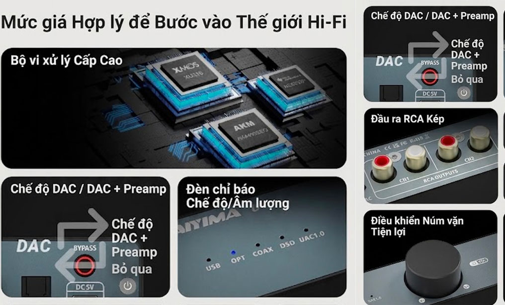 | Bộ vi mạch (Chipset) | AK4493SEQ + XMOS XU316 + NE5532P |