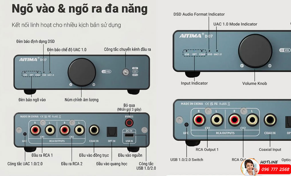 | Cổng đầu vào (Input) | Coaxial (Đồng trục), Optical (Quang học), USB |