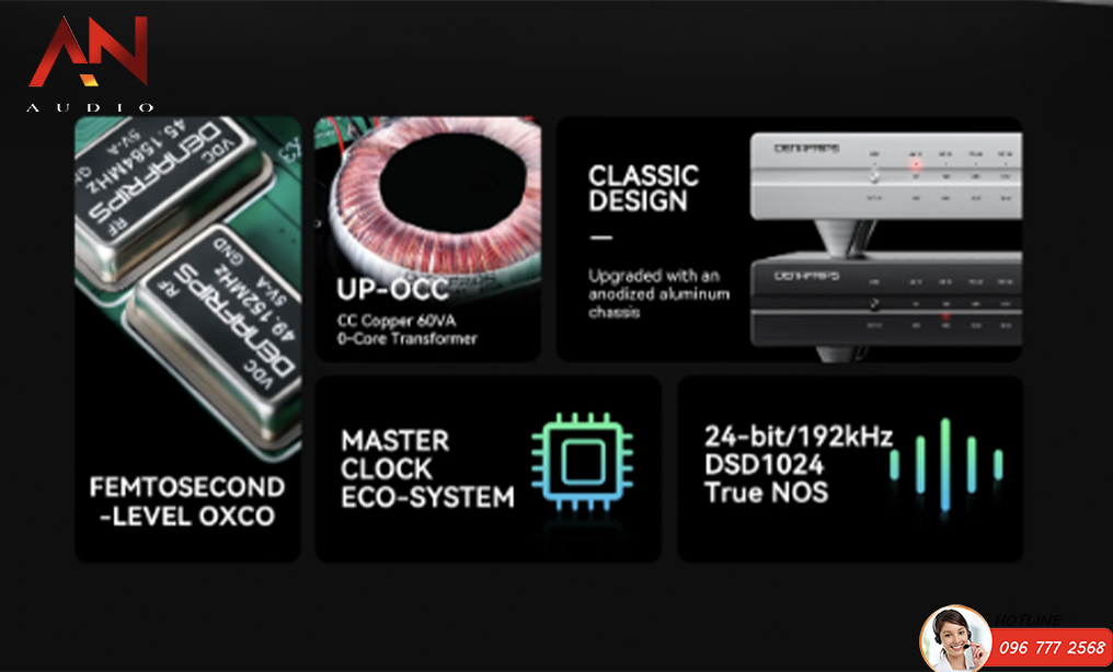 | Supported sampling rates | USB : PCM up to 768kHz, DSD up to DSD512 I2S : PCM up to 384kHz, DSD up to DSD512 Optical / Coaxial / AES : PCM up to 24bit 192kHz, DSD DoP up to DSD64 |