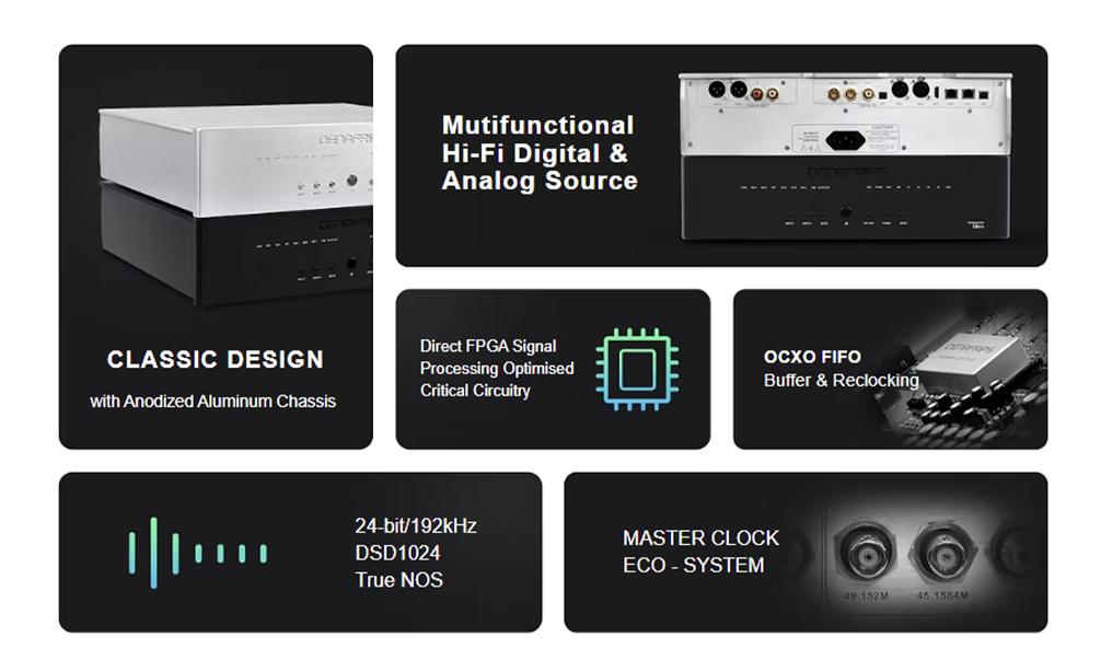 - DSD64 (DoP) trên đầu vào Coax/AES/Opt