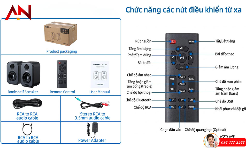 điều khiển Chế độ đầu vào: Bluetooth + Cáp quang + RCA + USB